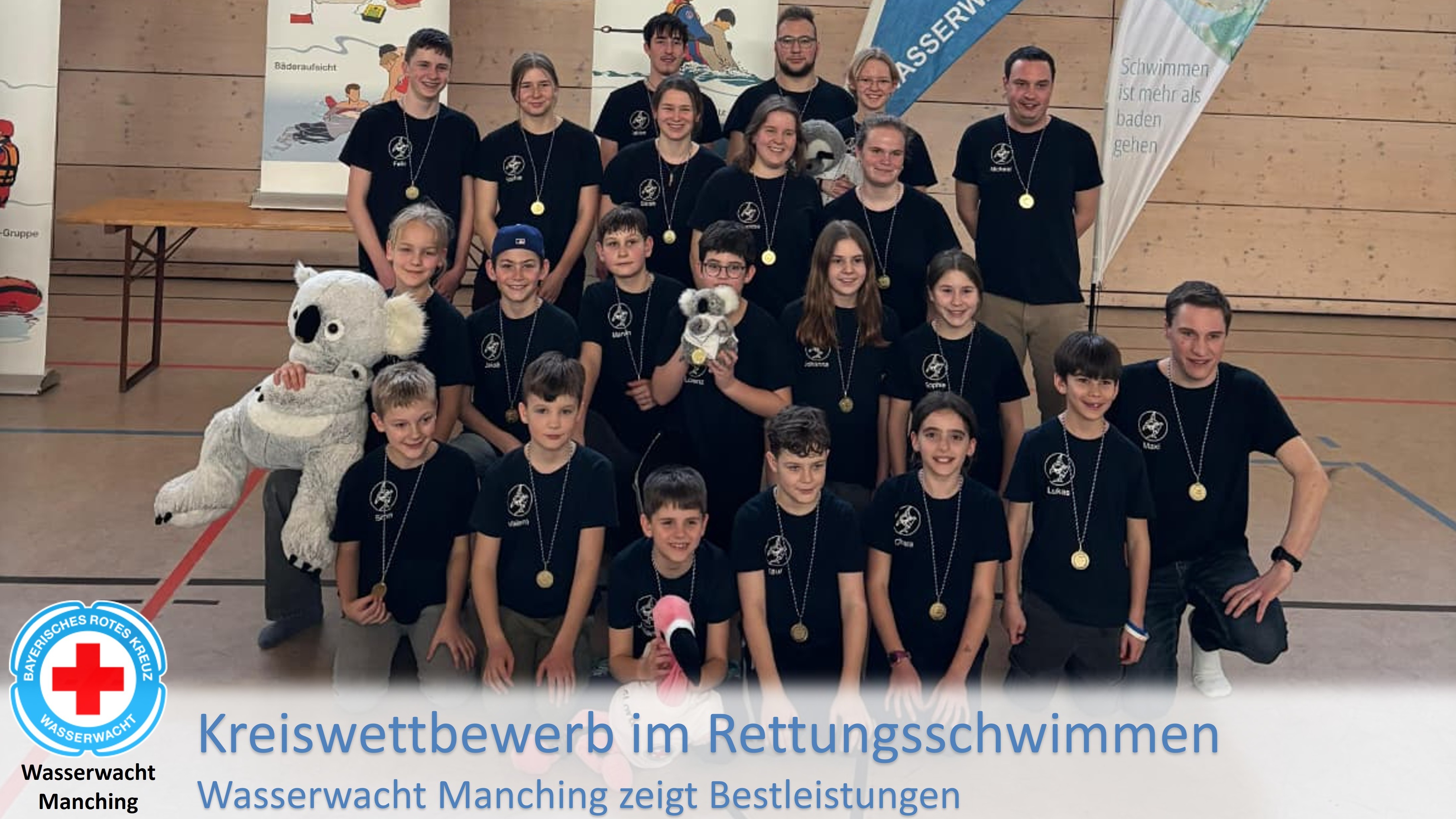 Am Samstag (28.02.2026) fand im Hallenbad Manching der Kreiswettbewerb im Rettungsschwimmen der Jugend statt. Für die Wasserwacht Manching war es damit ein Heimspiel – direkt vor der eigenen Haustür. An dem Wettbewerb nahmen Teams aus den Wasserwacht-Ortsgruppen Geisenfeld, Reichertshofen, Pfaffenhofen und Manching in den Altersstufen I, II und III teil. Der schwimmerische Teil wurde im Hallenbad Manching durchgeführt. Hierbei traten die Gruppen in sechs unterschiedlichen Schwimmdisziplinen an. Dabei kam es nicht nur auf Schnelligkeit an – auch das Tauchen sowie die sichere Anwendung von Rettungsring, Rettungsboje und Rettungsgurt mussten beherrscht werden. Die Schwimmer wurden von ihren Teams und Trainern lautstark unterstützt und lieferten sich spannende Wettkämpfe. Im Anschluss stellten die Teams ihr Wissen in Erster Hilfe – Theorie und Praxis unter Beweis. Beim Praxisteil wurden Personen (Mimen) realistisch mit Wunden geschminkt und mussten von den Teilnehmern fachgerecht versorgt werden. Die Schiedsrichter übernahmen hierbei die Bewertung und vergaben die entsprechenden Punkte. Ergänzend zum Schwimm- und Erste-Hilfe-Teil absolvierten die Teams verschiedene Fertigkeiten- und Spaßstationen, bei denen Teamarbeit, Geschicklichkeit und Wissen gefragt waren. Am Ende des Wettbewerbstages warteten alle Teilnehmer gespannt auf die Siegerehrung. Diese wurde von den Kreisjugendleiterinnen Vicky und Stephie durchgeführt. Für die Wasserwacht Manching war es ein besonders erfolgreicher Wettbewerb. In allen drei Altersstufen konnten sich die Teams aus Manching den ersten Platz sichern. Altersstufe I (8–10 Jahre): 1. Platz – Manching Altersstufe II (11–13 Jahre): 1. Platz – Manching Altersstufe III (14–16 Jahre): 1. Platz – Manching Die erstplatzierten Teams dürfen die Kreiswasserwacht beim Bezirkswettbewerb im Rettungsschwimmen in Geretsried vertreten.