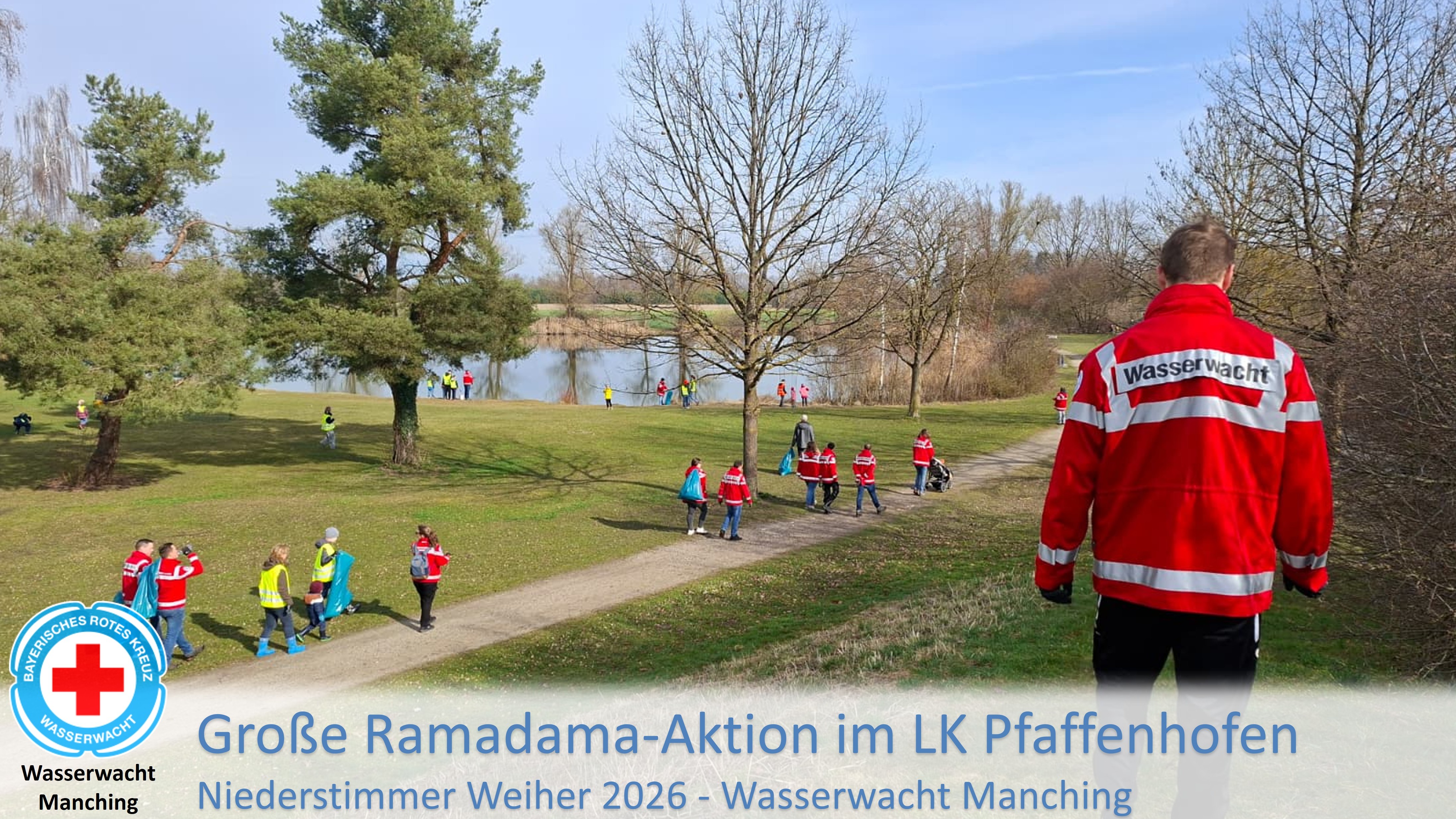 Ramadama-Aktion im Landkreis Pfaffenhofen Am vergangenen Samstag (14.03) reinigten die Mitglieder der Wasserwacht Ortsgruppe Manching das Gebiet um den Niederstimmer Weiher. Über 52 Aktive beteiligten sich ehrenamtlich an der Müllsammelaktion. Auch die Kleinsten durften bereits mithelfen! Ausgerüstet mit Arbeitshandschuhen, Greifzangen und Müllsäcken, trafen sich die Helfer um 9:00Uhr am Niederstimmer Feuerwehrhaus. Nach einem kurzen Fußmarsch zum Niederstimmer Weiher, ging es auch schon los, Müll und weggeworfene Glasflaschen wurden auf den Wegen, Gebüsch und um den Weiher von den Helfern leider jede Menge gefunden. Im Anschluss gab es zur Stärkung für die fleißigen Helfer Würstel und Brezen im Niederstimmer Feuerwehrhaus. Vielen Dank an Alle die sich wieder an der Ramadama-Aktion 2026 beteiligt haben!!!