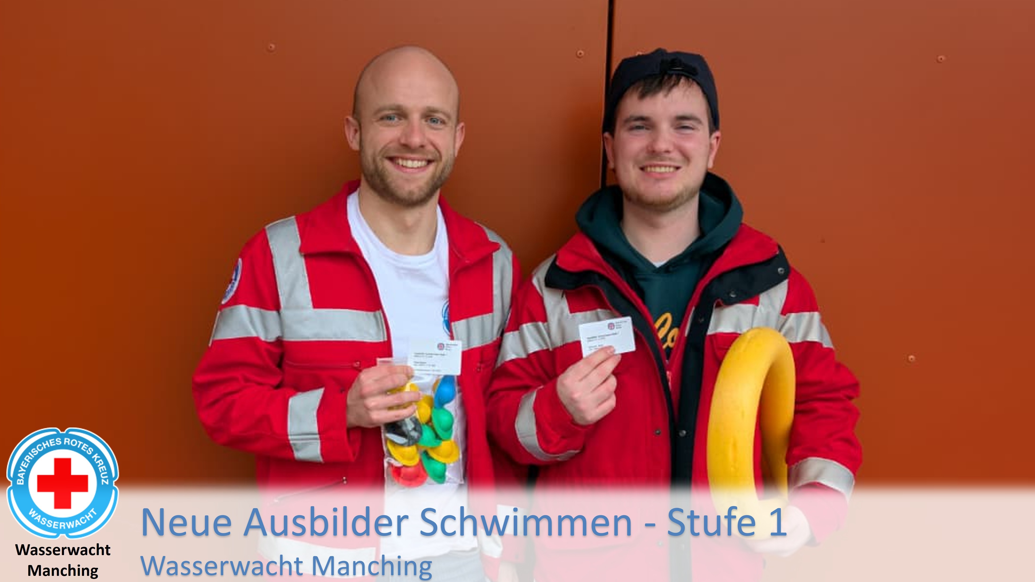 In der Wasserwacht gibt es zahlreiche Weiterbildungsmöglichkeiten. Neben der Hauptaufgabe Rettungsschwimmen gibt es unter anderem die Ausbildungsbereiche Tauchen, Motorbootführen und Schwimmen - der Basis für die Wasserwacht. Vergangene Woche bestanden die beiden Wasserwachtler der Ortsgruppe Manching, Alex Munz und Oliver Sckell, in Beilngries die theoretische und praktische Prüfung zum Ausbilder Schwimmen Stufe 1. Sie können somit künftig eigenverantwortlich Schwimmausbildungen zur Erlangung der Grundfertigkeiten im Schwimmen durchführen sowie das Schnorchelschwimmen ausbilden. Im Rahmen der Ausbildung wurden sowohl theoretische als auch praktische Inhalte vermittelt. Dazu gehörten unter anderem Schwimmtechniken oder Methodik und Didaktik im Anfängerschwimmen. In der Praxis wurde u. a. gelehrt, wie man als Ausbilder die verschiedenen Aspekte des Schwimmens bei Anfängern lehrt, festigt und somit Sicherheit beim Schwimmen vermittelt. Mit dem erfolgreichen Abschluss der Ausbildung können Alex und Oliver künftig die Schwimmausbildung innerhalb der Wasserwacht unterstützen und so einen wichtigen Beitrag zur Ausbildung neuer Schwimmerinnen und Schwimmer leisten. Wenn Sie mehr über die Wasserwacht und die das Angebot an Schwimmkursen für Anfänger und Fortgeschrittene erfahren möchten, besuchen Sie uns unter www.wasserwacht-manching.de/schwimmkurse.php oder schreiben Sie uns eine Nachricht über das Kontaktformular.